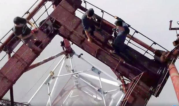 Các cột thu phát sóng này cao hơn 1000m so với mực nước biển, hoàn toàn không có lối lên, muốn trèo lên đỉnh trụ cột thu phát, các bạn trẻ phải trèo men theo những thanh sắt lên cao dần, và quá trình này phải mất hơn một tiếng đồng hồ.