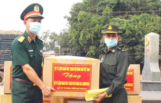 Theo đó, Thiếu tướng Nguyễn Trường Thắng, Phó Tư lệnh Quân khu 7 trao tặng vật tư y tế chống dịch Covid- 19 gồm: 50.000 khẩu trang, 1.000 lít dung dịch sát khuẩn tay, 1.000 bộ bảo hộ y tế, 200 kg Cloramin B cho Sư đoàn 2, Quân đội Hoàng gia Campuchia. Đồng thời gửi lời chúc mừng đến các tướng lĩnh, sĩ quan, chiến sĩ và gia đình nhân Tết Cổ truyền của dân tộc Khơ me sắp tới.