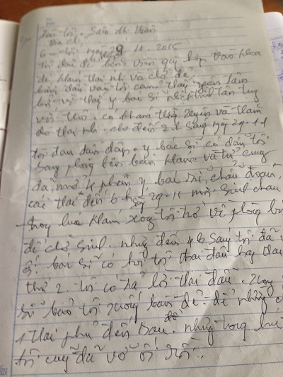Trong lúc sản phụ đang nằm trên bàn sinh, các bác sỹ đã không hướng dẫn cho sản phụ sinh mà làm việc riêng và ra ngoài nghe điện thoại.