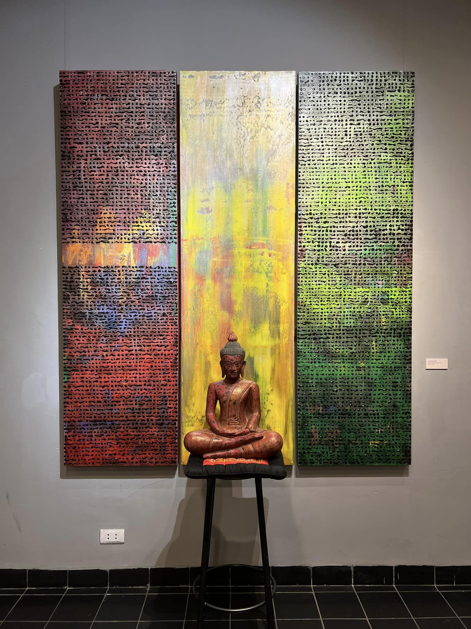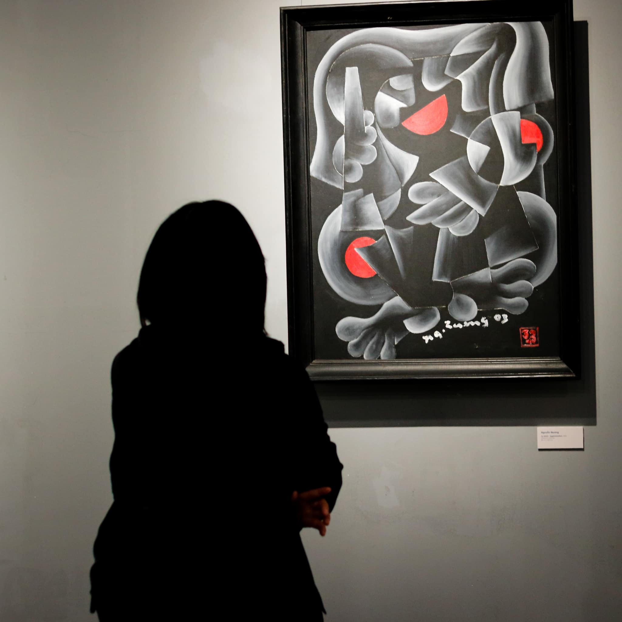 Chắc có lẽ vậy mà người xem tranh tuy bị hút vào đường nét màu sắc nhưng vẫn cảm thấy cân bằng khi đứng trước mỗi bức tranh.