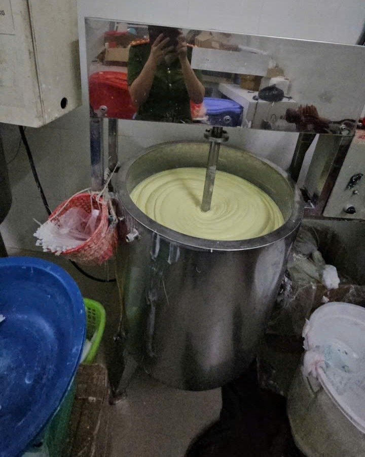 Đáng chú ý, phía sau lớp vỏ bắt mắt là hàng trăm kg hóa chất, nguyên liệu không rõ thành phần, cùng hàng nghìn bao bì, tem nhãn được chuẩn bị sẵn. Việc sản xuất được thực hiện bằng các thiết bị thô sơ, không đảm bảo điều kiện vệ sinh, an toàn.