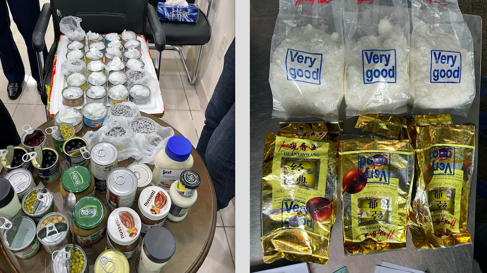 Kiểm tra bên trong, lực lượng chức năng phát hiện và thu giữ 12.000 viên thuốc lắc, được nguỵ trang trong các loại đồ hộp.