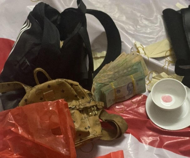 Tại hiện trường, lực lượng chức năng thu giữ tang vật gồm 155.990.000 đồng trên chiếu bạc; 4 bộ bát đĩa và 8 con vị; 33 điện thoại di động; 1 xe ô tô 16 chỗ để chở các đối tượng đến vị trí đánh bạc. Lực lượng chức năng cũng đã tạm giữ các vật chứng khác phục vụ cho việc đánh bạc, tiền và tài sản khác tổng cộng trên 500 triệu đồng.