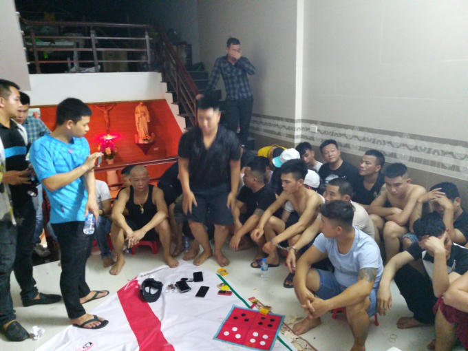 Tại hiện trường, hàng chục đối tượng đang say sưa sát phạt thì bị công an bắt giữ.