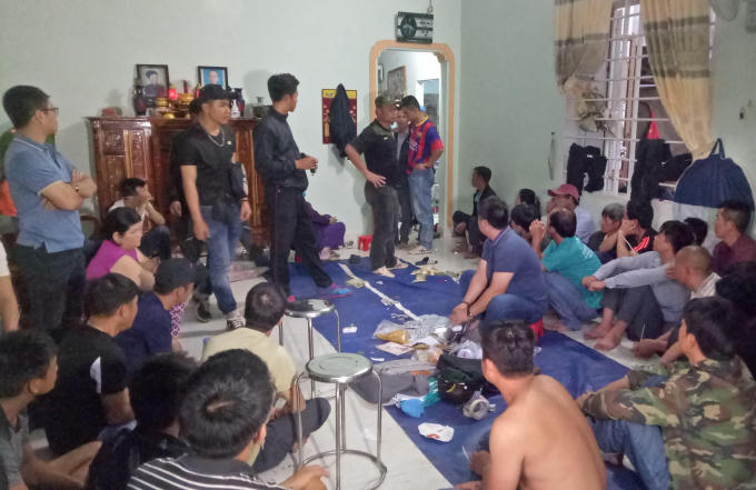 Tại hiện trường, lực lượng chức năng đã phát hiện và bắt giữ hơn 40 đối tượng đang sát phạt nhau bằng hình thức xóc đĩa.
