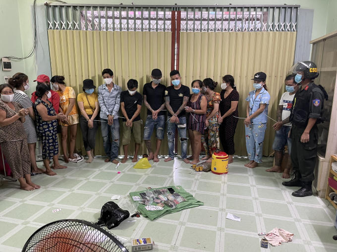Các đối tượng bị bắt giữ gồm Hoàng Thị Kim Oanh (chủ nhà), Trần Thị Thanh Thuý (ngụ TP HCM), Nguyễn Hồng Huệ (ngụ tỉnh Nghệ An), Mai Văn Tiệp (ngụ tỉnh Thanh Hoá), Huỳnh Tấn Nguyên Trung, Nguyễn Thị Yến, Huỳnh Thị Kiều Oanh, Lê Thị Ngọc Huyền, Nguyễn Thị Kim Anh (cùng ngụ TP Biên Hoà).