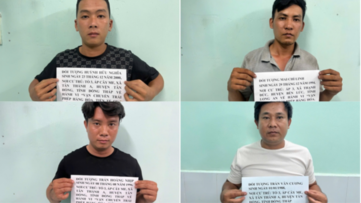 Trên xe có 03 đối tượng gồm: Mai Chí Linh (SN 1994, trú tại Long An), Huỳnh Hữu Nghĩa (SN 1988) và Trần Hoàng Nhịp (SN 1996, cùng trú tại Đồng Tháp). Làm việc các đối tượng khai nhận được Trần Văn Cương (SN 1988, trú tại huyện Tân Hồng, tỉnh Đồng Tháp) thuê vận chuyển máy gặt từ Campuchia về Kiên Giang với giá 4,5 triệu đồng/chuyến.