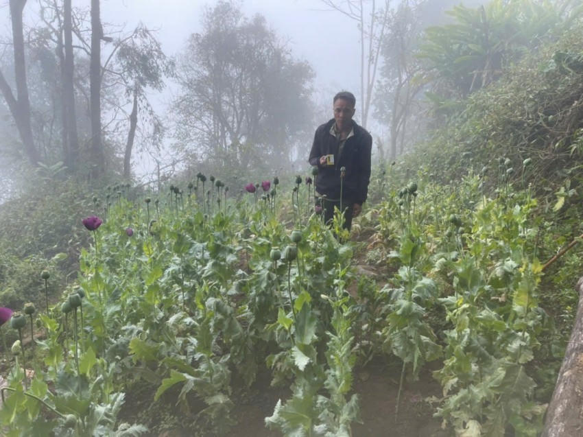 Tại cơ quan Công an, bước đầu Đánh khai nhận, khoảng tháng 10/2025, đối tượng đã tự ý gieo hạt và chăm sóc vườn cây thuốc phiện ngay tại nương ngô của gia đình trong rừng.