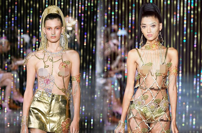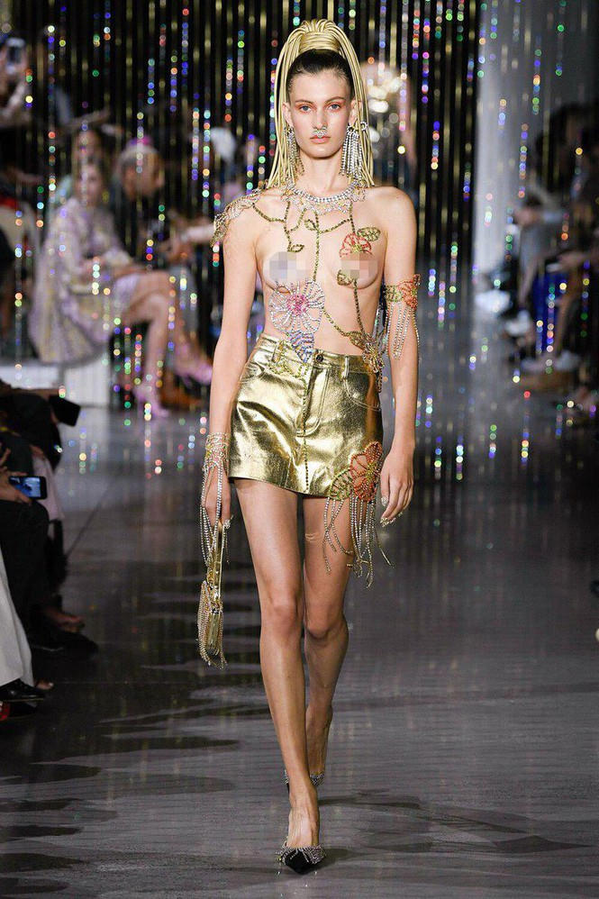 Theo video được nhà mốt này đăng tải trên kênh YouTube, một số người mẫu đã để ngực trần hoàn toàn khi catwalk và chỉ đính kèm một số phụ kiện trên người.