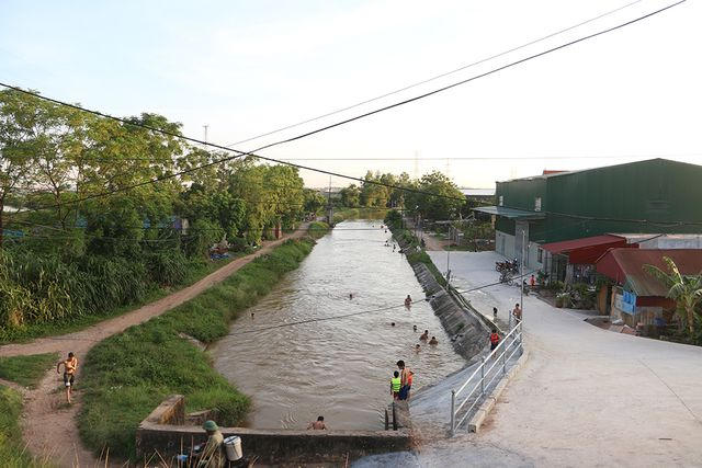 Những ngày hè Hà Nội nóng bức, nhiều em nhỏ lại tụ tập ở kênh thủy lợi Hồng Vân (thôn Hạ Thái, xã Duyên Thái, Thường Tín, Hà Nội) để thoả sức tắm mát, bơi lội.