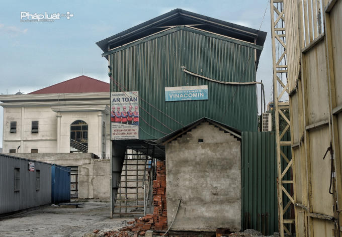 Khu vực văn phòng điều hành dự án vắng vẻ, ngổn ngang gạch đá, vật liệu xây dựng dù trong giờ làm việc. Ảnh: Lê Hải