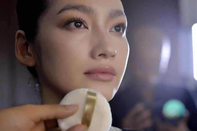 Cùng chung tinh thần tự nhiên, layout makeup của Trúc Diễm trong BST này tập trung vào việc tôn lên vẻ đẹp vốn có của người phụ nữ. Lớp nền glass skin được đánh tỉ mỉ dựa trên một làn da khỏe mạnh sẵn có, những sợi lông mày được trau chuốt gảy sợi tạo hiệu ứng 3D, son môi màu nude căng mọng,…