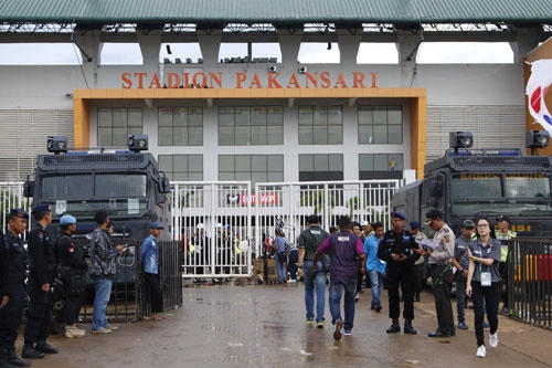 Hàng ngàn CĐV Indonesia tập trung trước sân Pakansari chuẩn bị vào sân.