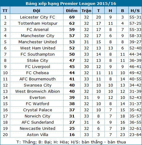 Vị trí thứ 2 trên BXH Ngoại hạng Anh thời điểm hiện tại có thể coi là một bất ngờ không nhỏ mà Tottenham đã dành cho những NHM bóng đá Anh. Sở hữu một đội hình trẻ, họ không được đánh giá cao hồi đầu mùa, thế nhưng đoàn quân của HLV Pochettino đến này đang xếp thứ 2 trên cuộc đua vô địch. Khoảng cách 7 điểm với đội đầu bảng Leicester là khá đáng kể nhất là khi mùa giải chỉ còn 6 vòng đấu nữa là kết thúc, thế nhưng với một môi trường có tính cạnh tranh cao như Ngoại hạng Anh, chẳng ai nói trước được điều gì.