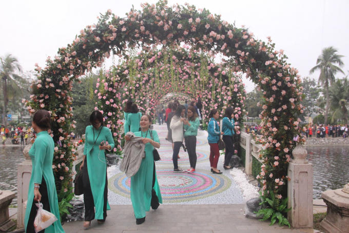 11h: Khu vực trưng bày hoa hồng thu hút rất nhiều người đến chụp ảnh kỷ niệm.
