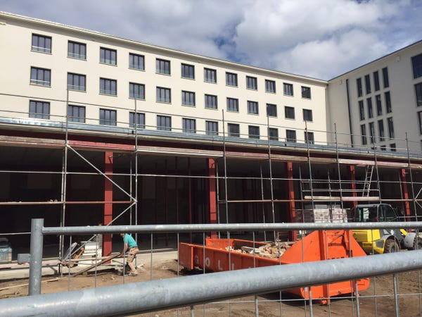 Để hoàn thành khu nghỉ dưỡng Prora, hơn 9.000 công nhân được huy động tham gia vào quá trình thi công.