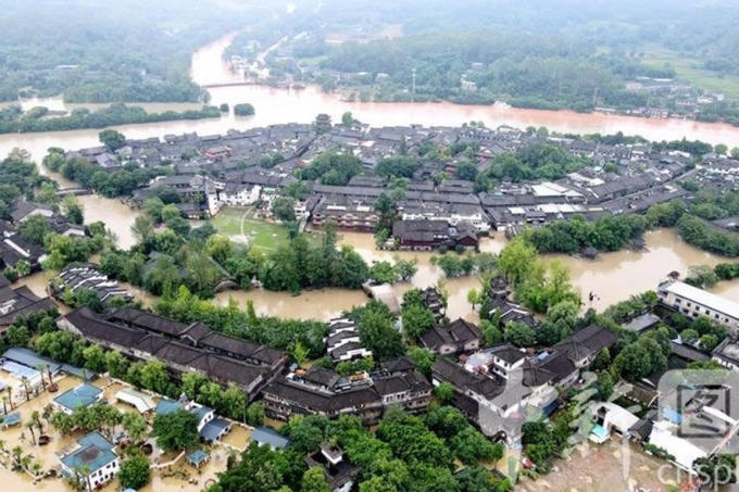 Thị trấn cổ Hoàng Long Khê có lịch sử hơn 2.000 năm ở Thành Đô, tỉnh Tứ Xuyên, bị ngập hôm 18.8. Ảnh: China News Service