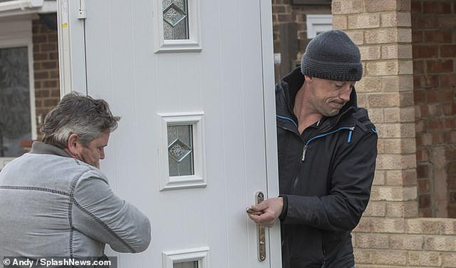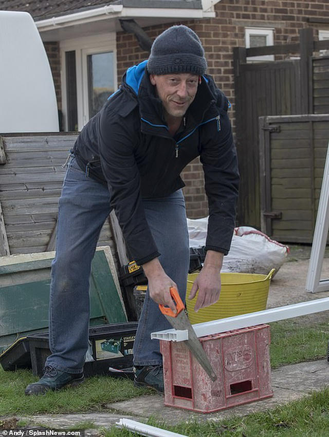 Những bức ảnh này cho thấy người đàn ông 42 tuổi mặc áo khoác đen, quần jean lửng và đội mũ len đang lắp cửa tại một khách sạn gần nhà ở Selsey, West Sussex, Anh.