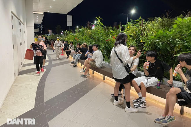 Theo ghi nhận của phóng viên, từ 8h tối, hoạt động mua sắm tại một khu trung tâm thương lớn ở quận Hà Đông (Hà Nội) trở nên tấp nập. Các bãi đậu xe của khu trung tâm này chật kín hàng ngàn phương tiện ôtô, xe máy. Trong khuôn viên của trung tâm thương mại, hàng trăm người ngồi hóng gió, ăn uống tụ tập đông người và không đeo khẩu trang.