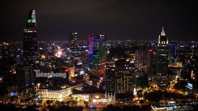 Về đêm, trung tâm TPHCM lung linh, huyền ảo dưới ánh hiện đại của các tòa nhà cao tầng trọc trời như Bitexco, Landmark...tạo nên một thành phố hiện đại, năng động bật nhất Việt Nam.