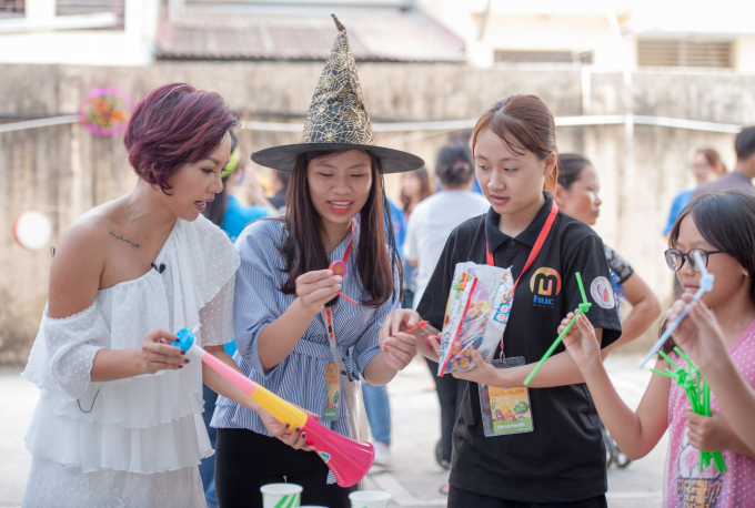Buổi sáng, hơn 1.900 bệnh nhi ở bệnh viện đều được nhận 2-3 món đồ chơi tự chọn, một cặp bánh trung thu, một đèn ông sao và một vỉ váng sữa Monte. Trải dài khắp khuôn viên trước cửa căng tin của bệnh viện là các khu bóng bay nghệ thuật, nặn tò he, chụp và in ảnh miễn phí, khu trò chơi mầm non, trò chơi vận động, khu đọc sách, tô tượng, làm gốm, làm đồ handmade, cắt tóc miễn phí...