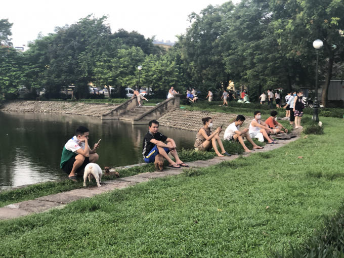 Trong khi cả nước đang phải gồng mình chống dịch, thì tại công viên hồ đền lừ người dân vẫn mặc nhiên không đeo khẩu trang khi đi tập thể dục.