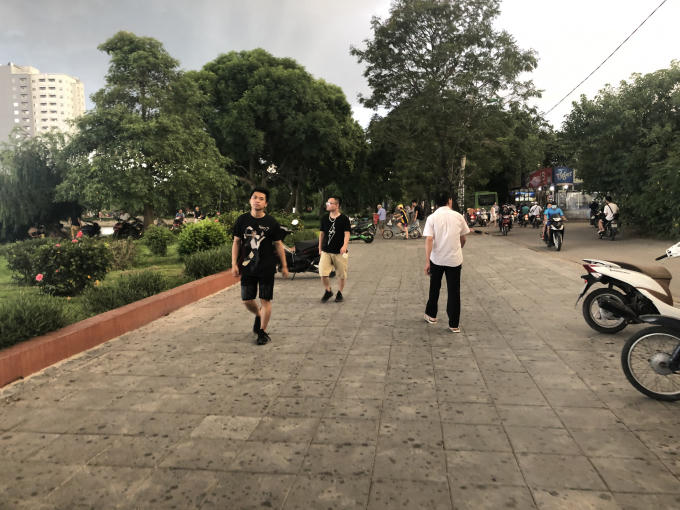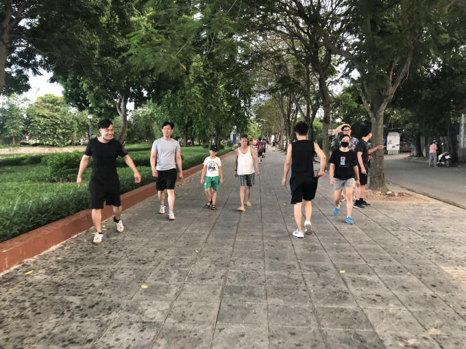 Người dân vô tư đi tập không đeo khẩu trang ( Ảnh Danh Kiên)