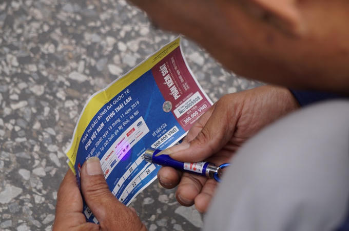 Qua kiểm tra tại chỗ, cảnh sát phát hiện nhiều cặp vé do người đàn ông này bán có màu sắc khác lạ với vé do ban tổ chức phát hành.
