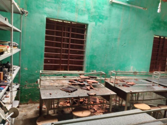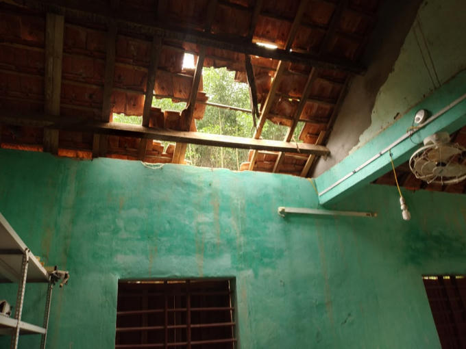Mưa kéo dài, hàng loạt mái ngói ở các phòng học đã đổ sập, may mắn thời điểm đó là ngày nghỉ, khiến cô trò nơi đây được một phen hú vía.
