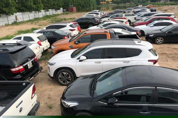 Xe ô tô được các đối tượng để tại nhiều địa điểm, kho bãi với số lượng xe lên đến gần 100 chiếc.