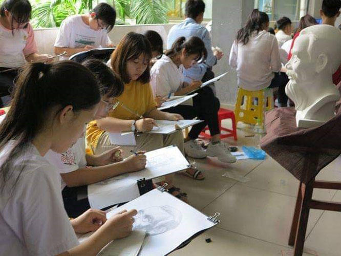 Về kết quả thi năng khiếu môn vẽ trang trí màu nước, thí sinh đạt điểm cao nhất là 9,5 điểm (có 2 thí sinh); môn vẽ đầu tượng điểm cao nhất là 9 điểm (có 4 thí sinh). Số thí sinh có kết quả thi dưới 5 của cả hai môn là 81 thí sinh.