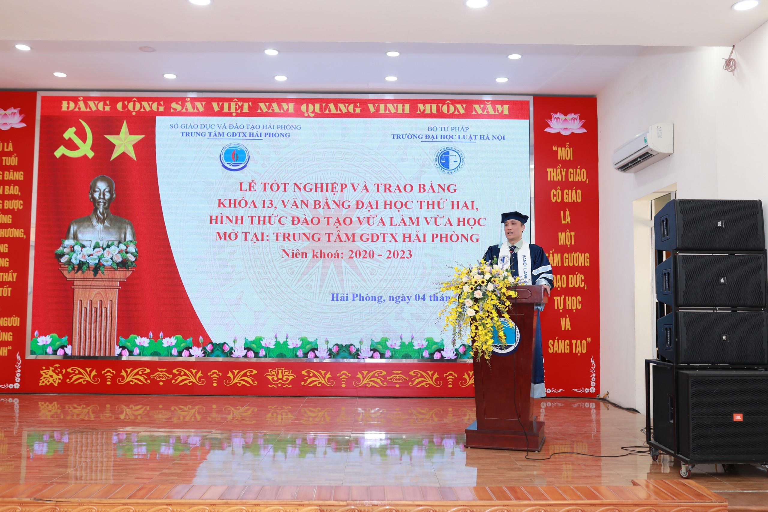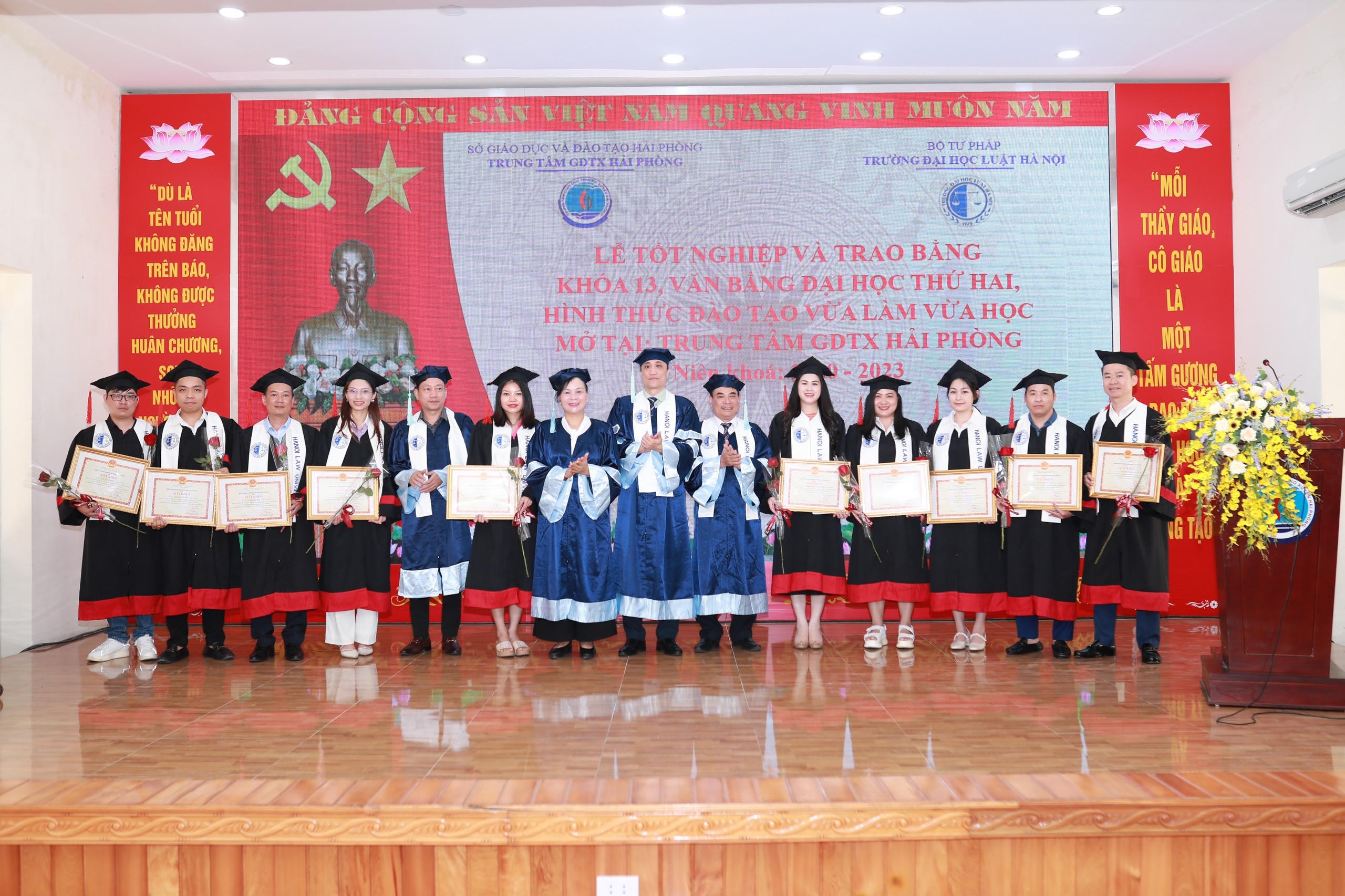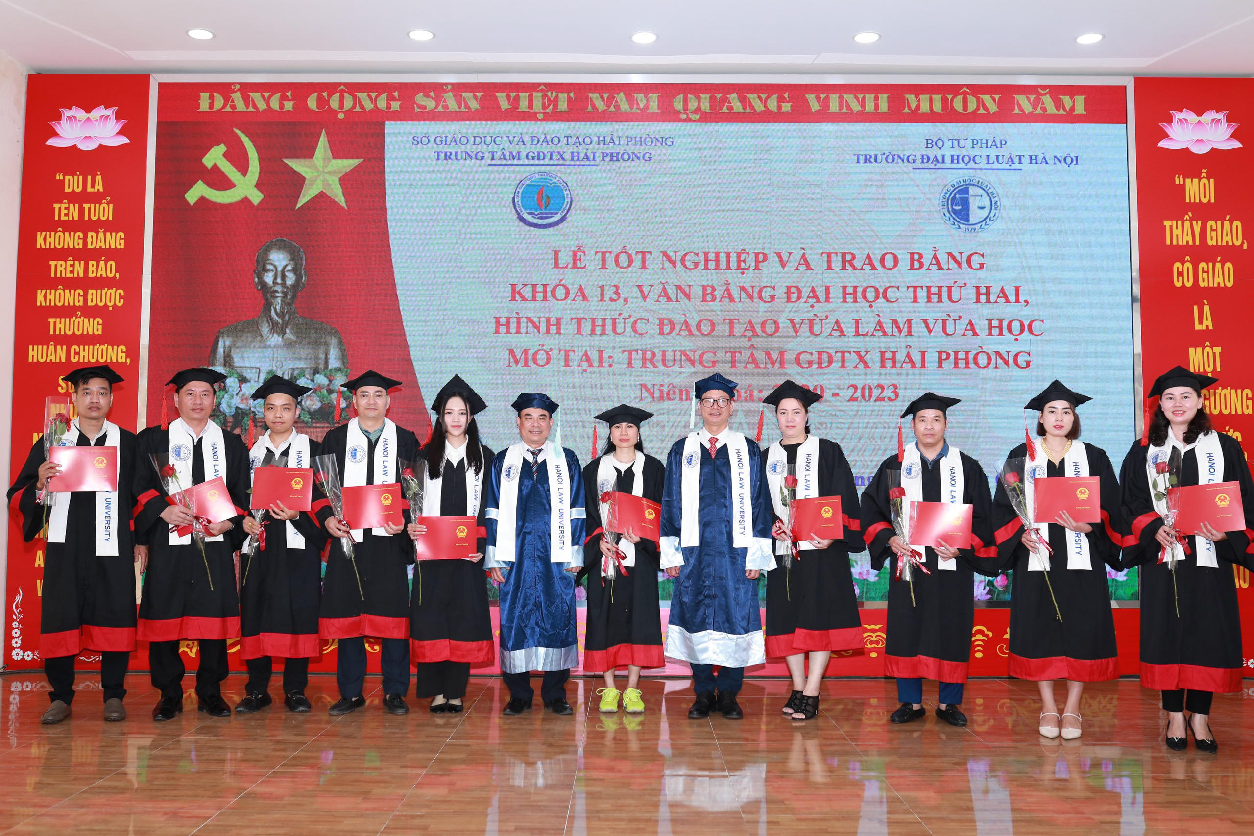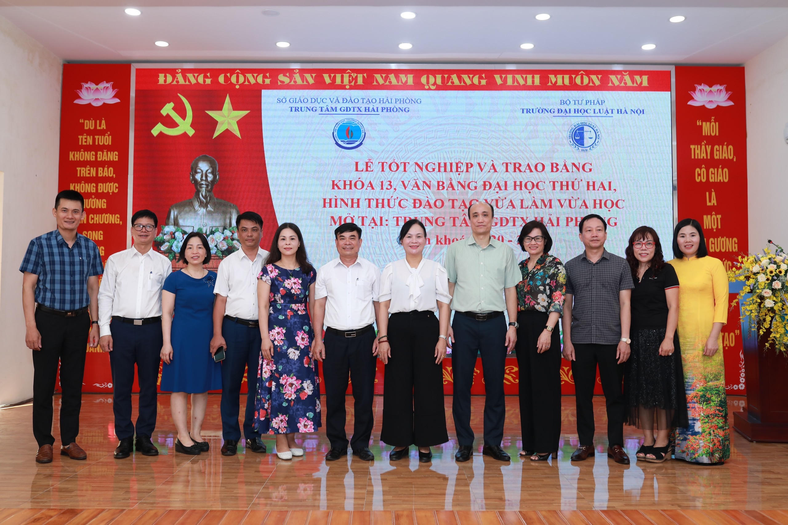 Trung tâm Giáo dục thường xuyên Hải Phòng vừa phối hợp với Trường Đại học Luật Hà Nội tổ chức Lễ bế giảng và trao bằng tốt nghiệp khóa 13, lớp đại học văn bằng 2 theo hình thức đào tạo vừa làm vừa học.