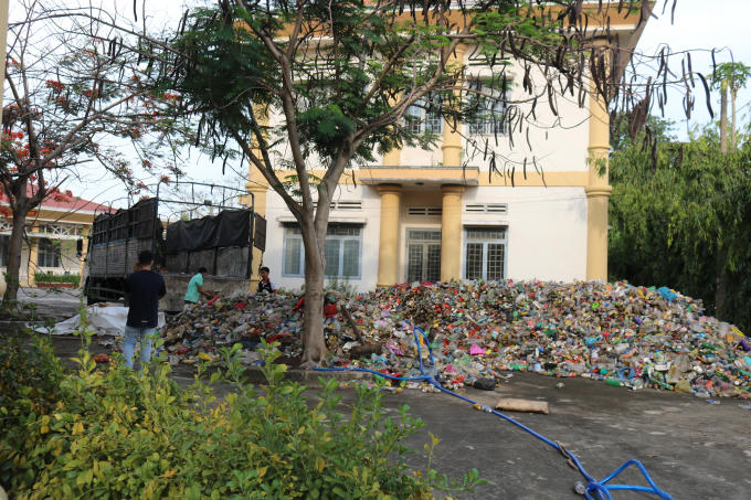 Phế liệu được đổ ngay trong lòng sân trường để loại.