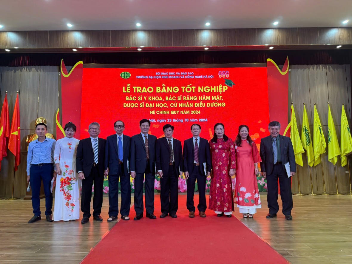 Sáng ngày 24 tháng 10 năm 2024 tại trường Đại học Kinh doanh và Công nghệ Hà Nội đã diễn ra Lễ trao bằng tốt nghiệp Đại học chính quy khối Sức khỏe năm 2024. các khóa (YK23, RM23, DK24). Hơn 295 sinh viên thuộc các ngành : Y, Dược, RHM, Điều dưỡng đã tốt nghiệp ra trường và một số em đã được tuyển dụng vào các bệnh viện lớn. Đây cũng là thành tích đáng tự hào thể hiện quyết tâm và nỗ lực của Thầy và trò trường Kinh doanh Công nghệ Hà Nội trong việc đào tạo đội cán bộ y tế chăm sóc sức khỏe nhân dân.