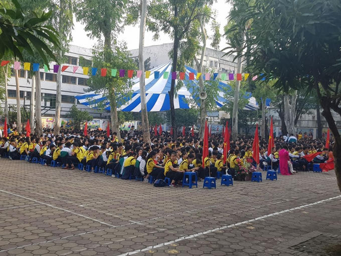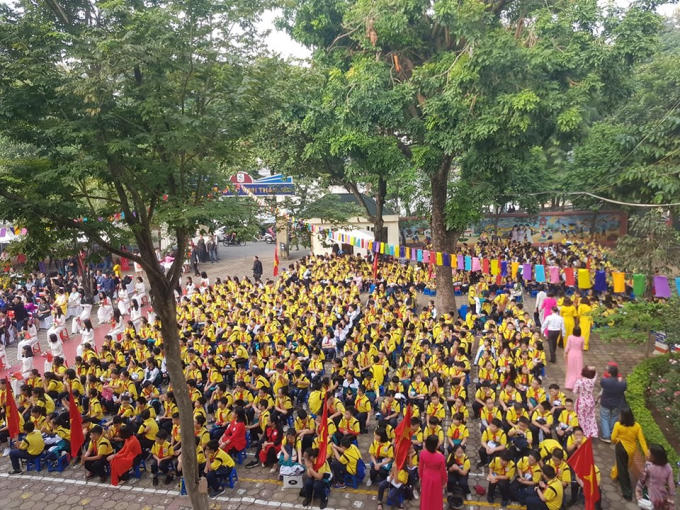 Các em học sinh tới tham dự buổi lễ đông đủ trong bộ đồng phục nhà trường.
