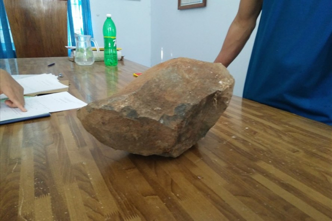 | Viên đá các đối tượng ném vào người nhà báo Chiểu (ảnh: Lao Động). |