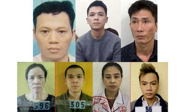 Nguyễn Xuân Quý bên trái (hàng trên). Đỗ Thị Lưu, Nguyễn Anh Vũ, Nguyễn Thị Minh Huệ và Bùi Chí Hải từ phải qua - hàng dưới (Nguồn: Hanoimoi.com.vn).