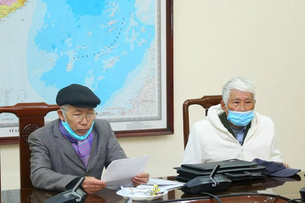Ông Khúc Văn Long và em trai tại buổi tiếp công dân. (Ảnh: PV/Vietnam+)
