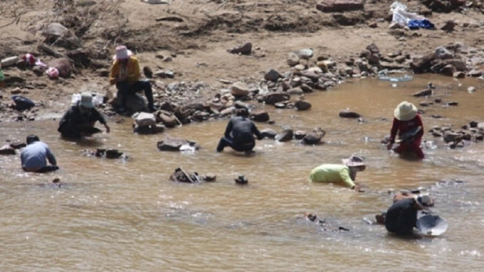 Người dân đào đãi vàng trên dòng sông Đakrông, đoạn qua xã Tà Rụt (huyện Đakrông, Quảng Trị) sau đợt mưa lũ - Ảnh minh họa
