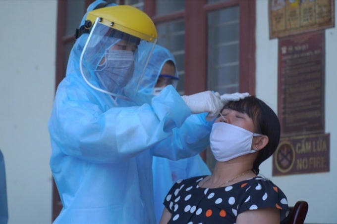 Nhân viên y tế cũng đã tiến hành lấy mẫu xét nghiệm cho người dân thôn Hoàng Xá. (Ảnh: LDO)