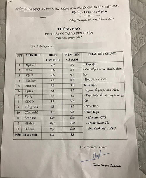 Sự thật về bảng điểm toàn 10 khiến cư dân mạng trầm trồ “con nhà người ta”
