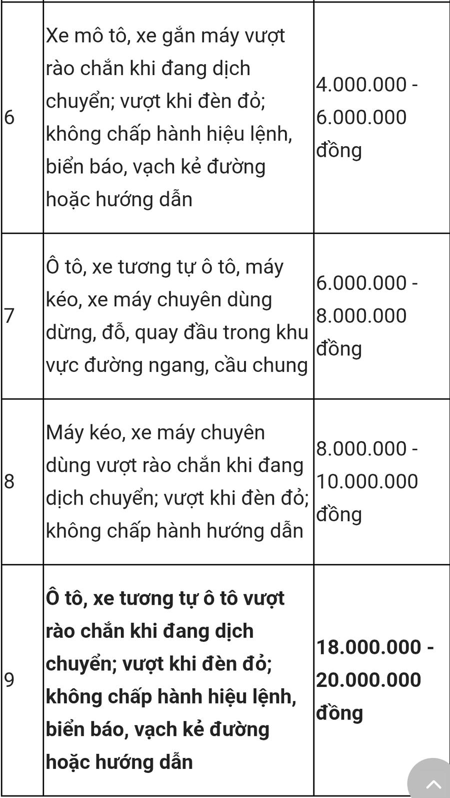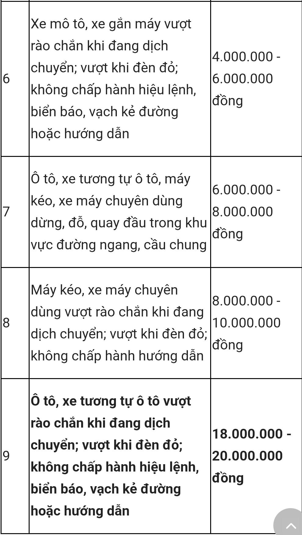 Cụ thể, ô tô vượt rào chắn, cố tình đi qua đường ngang khi có tín hiệu cảnh báo sẽ bị phạt từ 18 đến 20 triệu đồng. Mức phạt này tăng mạnh so với quy định trước đây tại Nghị định 100/2019/NĐ-CP (được sửa đổi, bổ sung bởi Nghị định 123/2021/NĐ-CP), vốn chỉ từ 4 đến 6 triệu đồng.