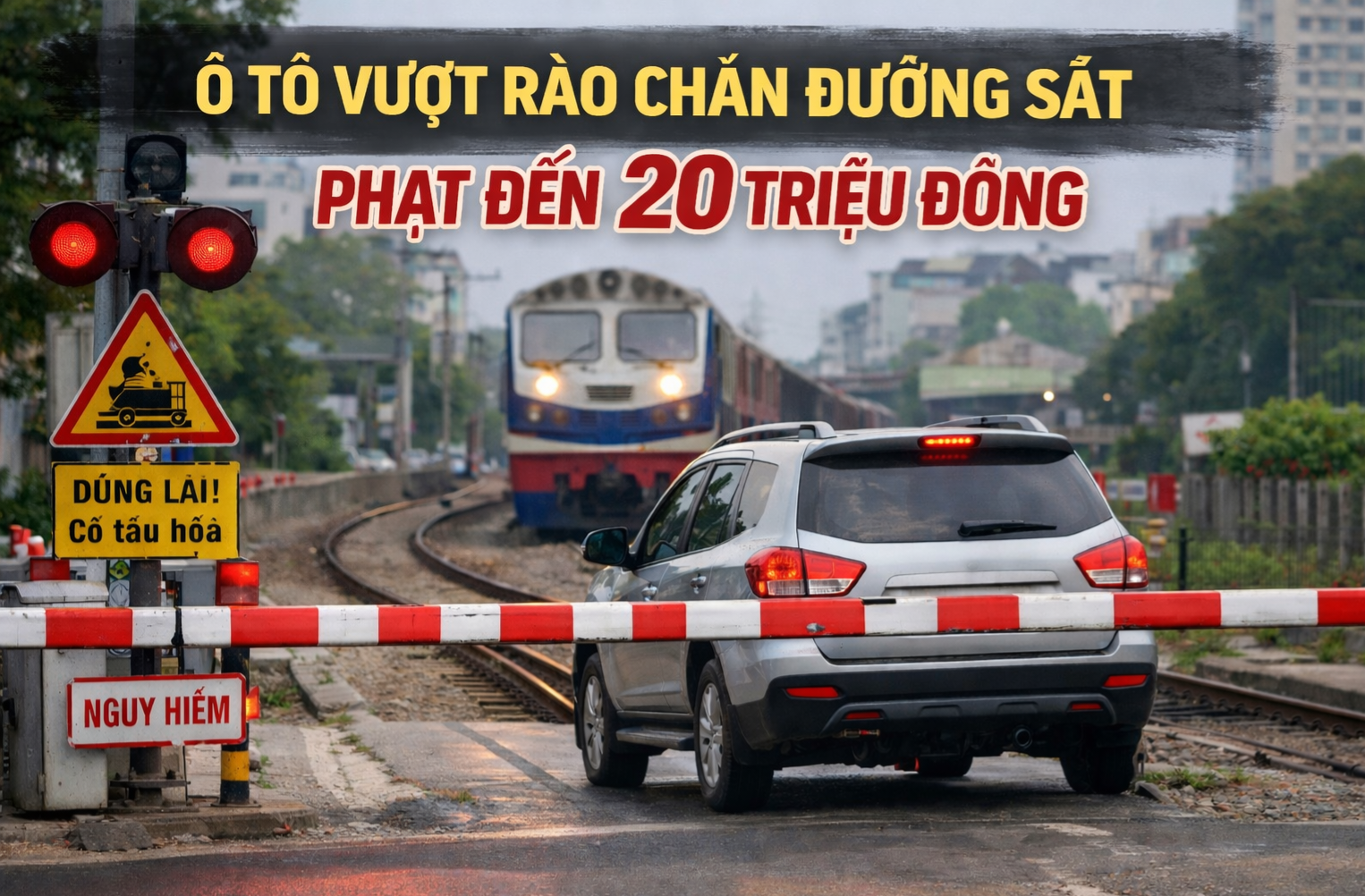 Từ 15/5, ô tô vượt rào chắn đường sắt bị phạt tới 20 triệu đồng