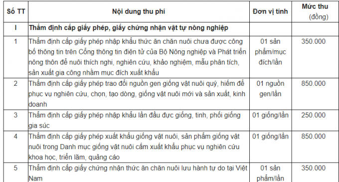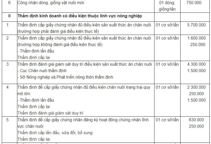 Cụ thể, giảm 50% mức phí thẩm định cấp giấy phép, giấy chứng nhận vật tư nông nghiệp; thẩm định kinh doanh có điều kiện thuộc lĩnh vực nông nghiệp; thẩm định công nhận hoặc chỉ định, giám sát phòng kiểm nghiệm, phòng thử nghiệm trong lĩnh vực nông nghiệp.