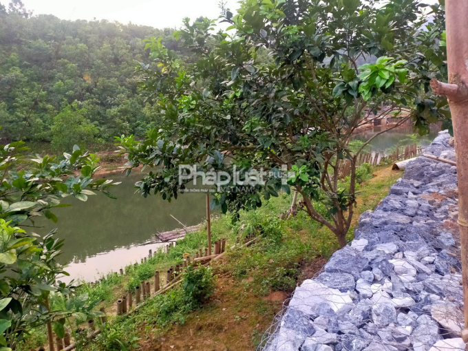 Khu vực được chủ đất cắm cọc tre, hóp, kè bờ chống sạt lở đã làm đất rơi vãi, tràn xuống công trình hồ chứa nước Quang Minh bị UBND xã Quang Minh xử phạt vi phạm hành chính.