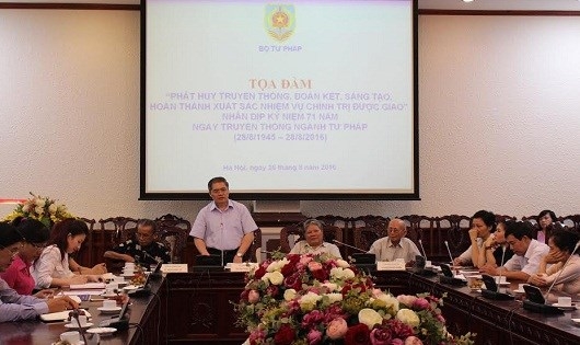 Chiều 26/8, dưới sự chủ trì của Thứ trưởng Đinh Trung Tụng, Bộ Tư pháp tọa đàm kỷ niệm 71 năm Ngày truyền thống ngành Tư pháp (28/8/1945 - 28/8/2016) với chủ đề “Phát huy truyền thống, đoàn kết, sáng tạo, hoàn thành xuất sắc nhiệm vụ chính trị được giao”.