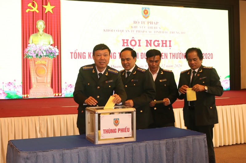 Các đơn vị tham gia hội nghị cũng tiến hành bình xét, suy tôn một các nghiêm túc, khách quan để đề nghị Bộ trưởng Bộ Tư pháp tặng Cờ thi đua xuất sắc cho các tập thể có thành tích xuất sắc trong công tác tư pháp năm 2019 gồm 2 Sở Tư Pháp: Thanh Hóa, Quảng Bình; 2 Cục THADS: Thanh Hóa, Nghệ An và 8 chi cục THADS cấp huyện trực thuộc Khu vực.