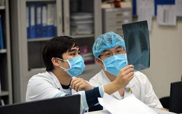 Bác sĩ BV Bệnh nhiệt đới trung ương cơ sở 2 (Hà Nội) trao đổi về quá trình điều trị người nhiễm Covid-19. Ảnh: Nhân Dân
