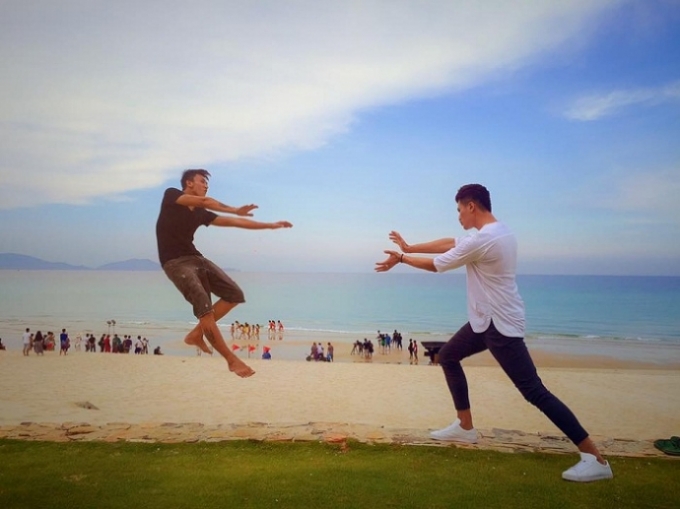 Vĩnh Thụy luyện "thần chưởng" trên bờ biển.