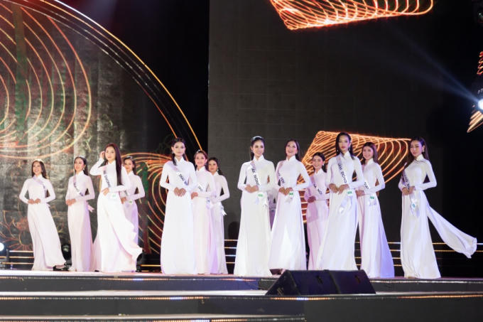 Top 30 thí sinh trong trang phục áo dài trắng.